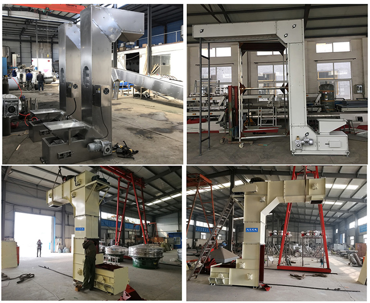 z型斗式提升机食品厂配合包装机输送,输送小麦,碎矿石输送等现场案例展示。